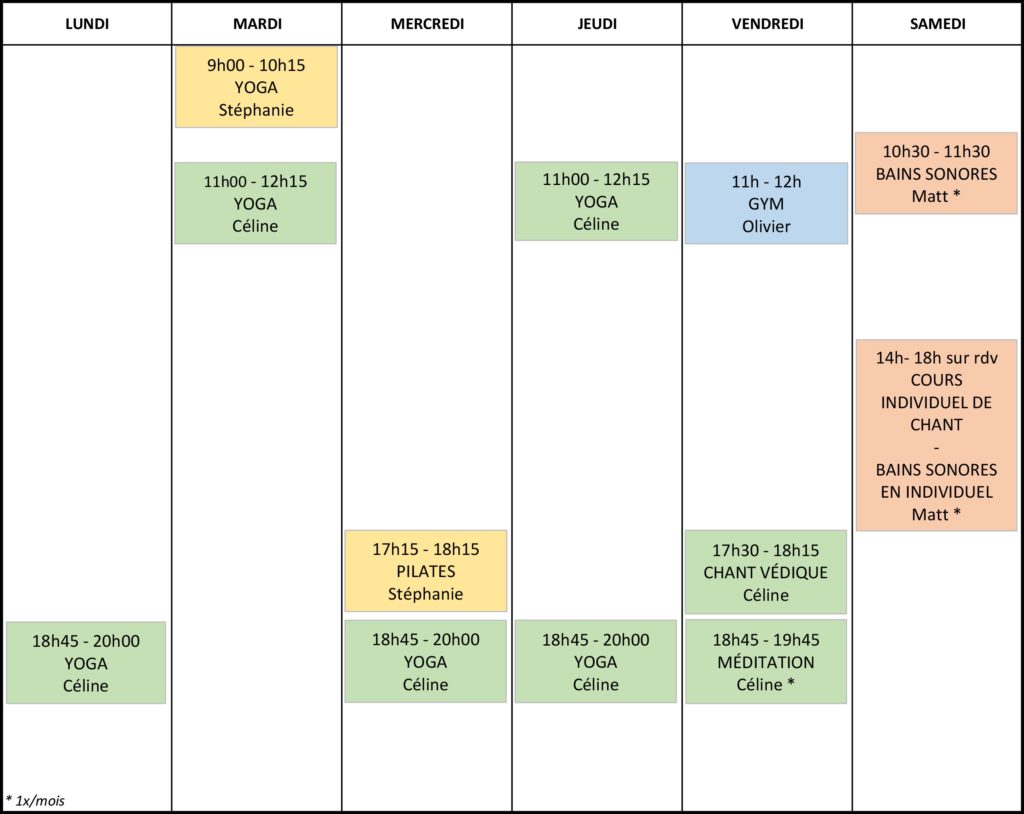 Chaque mois, il propose un bain sonore collectif ou en individuel, et des cours individuels de chant.