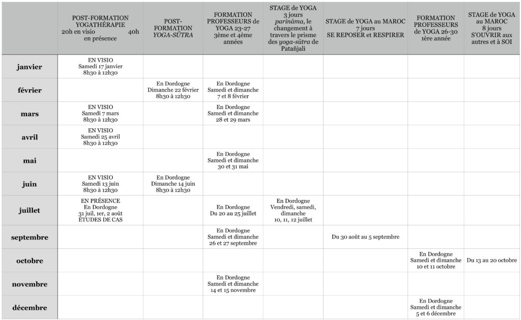 Programme des ateliers et stages en lien avec le yoga proposés cette année